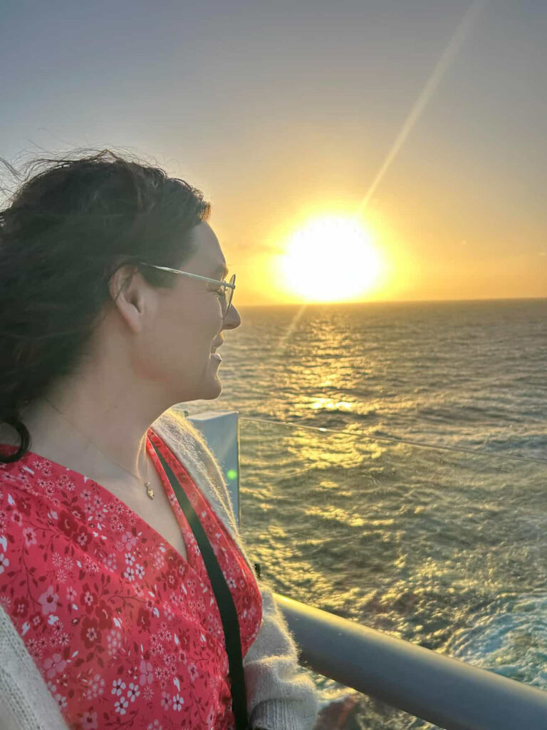 – Er det en ting jeg er glad for, så er det at jeg har med meg loops. Sånne dingser for å putte i ørene for å dempe bakgrunnstøy. På cruiseskip er det lyder og mennesker over alt til en hver tid, så det har vært en “livbøye”, da det er akkurat støy som er den største utfordringen min nå. Jeg har også med meg støydempende hodetelefoner. De er helt fantastiske å ha på flyplass og fly. I tillegg planlegger vi slik at vi unngår å spise på de mest travle tidene i restauranten på båten. Vi spiser middag klokken 21, for da er det godt med luft mellom bordene og jeg har fått en “time out” på lugaren på forhånd. Så ferie med fatigue handler mye om planlegging, forventningsavklaring og raushet.